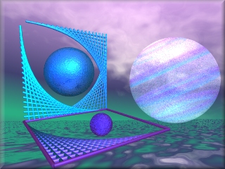 Die ff. Bilder zeigen Kugel, Kegel, Zylinder, Quader und Ebene. Per Mausklick auf das Bild ist jeweils das zugehörige Skript einsehbar: