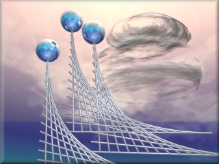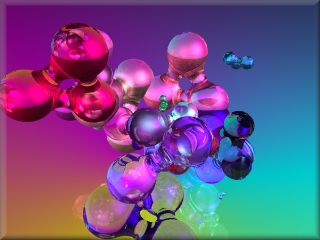 Benutze verschieden Texturen, Farben, Oberflächenstrukturen für die einzelnen Körper, füge auch eine Hintergrundebene ein.