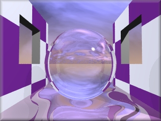 - map_type 1: kugelförmige Bildprojektion: Stellt man sich eine Kugel im Koordinatenursprung vor, dann entspricht die y-Achse der Nord-Süd-Richtung, Ober- und Unterkante des Bildes berühren ohne auf eine Skalierung Rücksicht zu nehmen, die beiden Pole. Das Bild wird um die Kugel gewickelt.