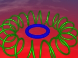 Im ersten Bild wurde vlength benutzt, um abhängig vom Abstand zum Nullpunkt die Farbe der Kugeln festzulegen. Im zweiten Bild wird vlength eingesetzt, um den Blauanteil in der Farbe der Spiralenscheiben in Abhängigkeit vom Abstand zum Nullpunkt zu erhöhen.