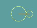 Der Gangkreis rollt auf dem Rastkreis ab. Der zu beobachtende Punkt liegt auf der Kreislinie des Gangkreises: EPIZYKLOIDE.