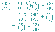 Beispiel: Der Punkt P(3/5)=P(x1/x2) werde auf den Punkt P'(5/11)=P'(x1'/x2') abgebildet, die ff. Vektoren seien gegeben: