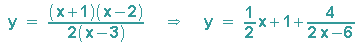 und erkennt, dass der Wert des Bruches für diesen Fall gegen Null strebt. Die verbleibende Gerade wird Asymptote der Funktion genannt. Manchmal wird auch noch die Polstelle x=3 so genannt.